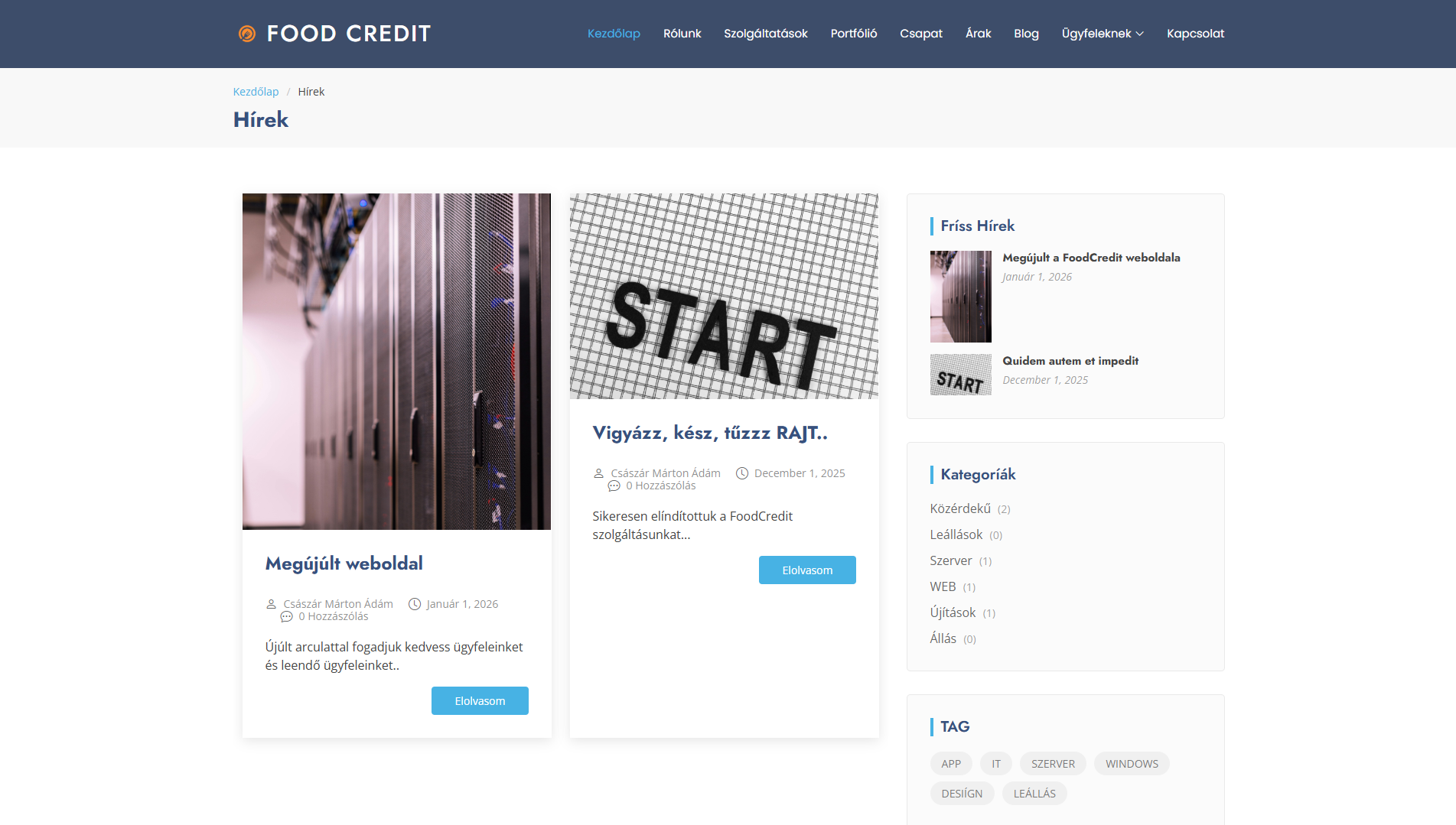 Örömmel jelentjük be, hogy elindult a FoodCredit teljesen megújult weboldala, amely modern megjelenéssel és átláthatóbb felépítéssel segíti a felhasználókat.